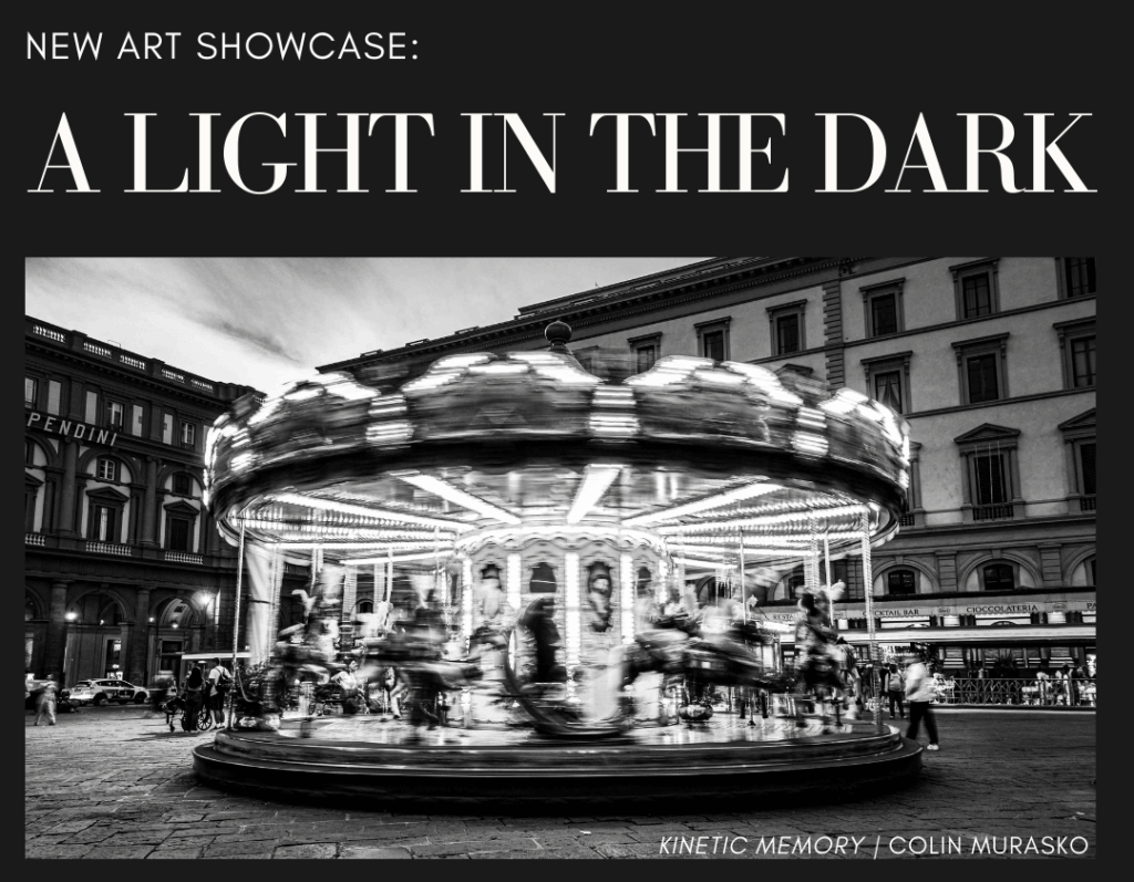 From December 12-January 19 we are thrilled to present “A Light in the Dark” in our Main Gallery. The show features various artists’ interpretations of the themes of light, hope, and perspective in a range of mediums and styles.